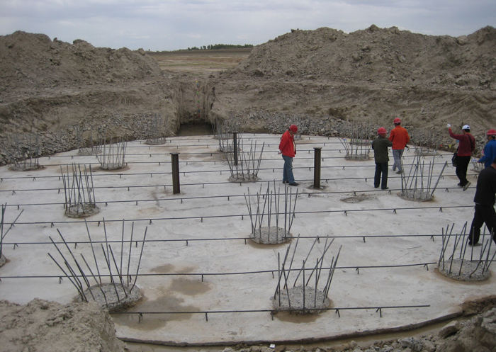 施工內(nèi)容及工程量:32臺(tái)風(fēng)機(jī)基礎(chǔ)工程樁基施工。本工程樁基施工共完成:φ800mm鉆孔灌注樁(C30F100) 544 根,樁長(zhǎng)18~29m,設(shè)計(jì)混凝土方量6322m3,實(shí)際混凝土灌注方量為6764.5m3,平均充盈系數(shù)1.07,鋼筋加工制作528t。