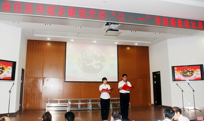 7月1日,河北省住房和城鄉(xiāng)建設(shè)廳慶“七·一”詩朗誦歌詠比賽隆重舉行,我公司員工朱彩華、高哲的詩朗誦《永遠(yuǎn)的豐碑》獲得三等獎(jiǎng)。