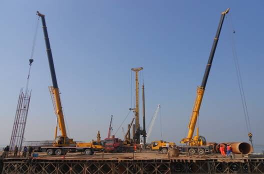 開(kāi)工日期:2013年8月26日,竣工日期:2014年6月14日。寧高主橋樁基工程,施工合同任務(wù)為216-219號(hào)四個(gè)主墩,樁徑為1.8m、2.0m兩種,有效樁長(zhǎng)為50m-73m,設(shè)計(jì)孔深62m-89m的鉆孔灌注樁共計(jì)78根,合同工作量13762m³。第二個(gè)施工合同任務(wù)為引橋樁基直徑1m的樁160根,有效樁長(zhǎng)24-40m,直徑1.25m的樁31根,有效樁長(zhǎng)27-35m,直徑1.6m的樁27根,有效樁長(zhǎng)43-45m,直徑1.8m的樁33根,有效樁長(zhǎng)30-45m?!?/span>