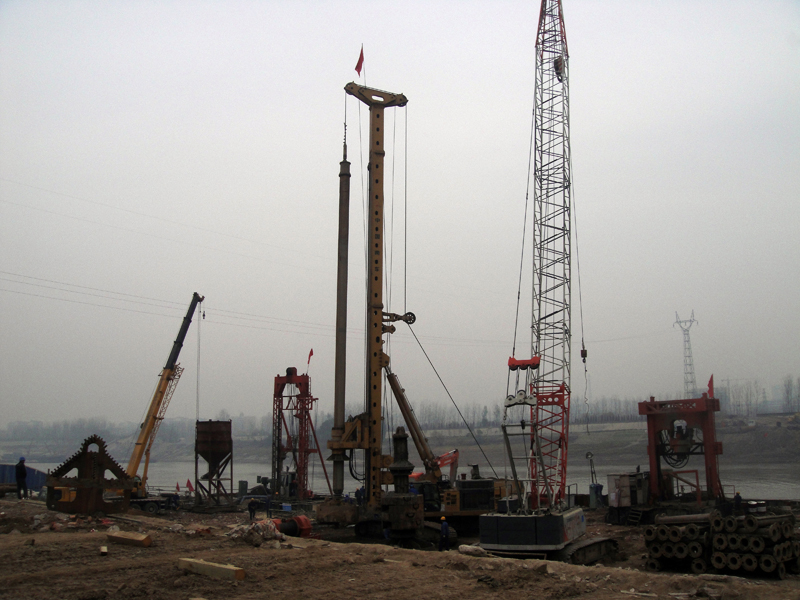 江漢六橋的2#、3#、4#墩臺基樁。每個橋墩分別采用兩個承臺承重,灌注樁皆為嵌巖樁,樁徑為1.8m與2.2m,樁長90~110m,本工程共計46根鉆孔灌注樁,完成混凝土灌注方量20000余方。