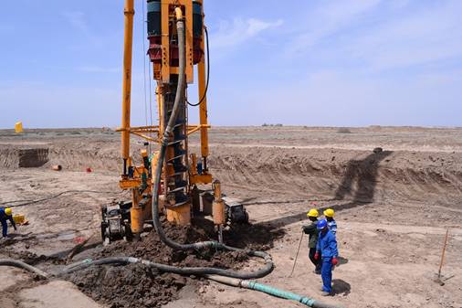 本期工程地處石河子市121團(tuán)團(tuán)部東北約1公里處。該場(chǎng)地東西長(zhǎng)351米,南北寬約220米。廠(chǎng)址地勢(shì)平坦開(kāi)闊。我單位主要承擔(dān)該工程地基處理施工任務(wù),主要包括: 主廠(chǎng)房、冷卻塔、煙囪等部位的降水工程、CFG樁、土方開(kāi)挖、樁頭破除、褥墊層施工及戈壁料換填任務(wù)。公司共完成42929.27m3土方開(kāi)挖,直徑400mm的CFG樁2868根,約4754.87m³混凝土,6306.71 m3戈壁料換填墊層施工以及全場(chǎng)區(qū)的降水工程。