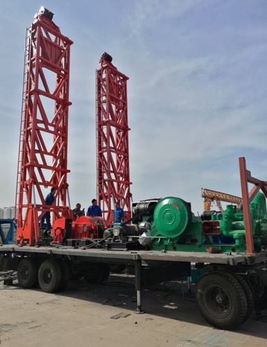 6、鉆機(jī)采用模塊化結(jié)構(gòu)設(shè)計(jì),具有可獨(dú)立使用的轉(zhuǎn)盤部分、變速箱卷揚(yáng)部分、動力部分、泥漿循環(huán)系統(tǒng)、拖車部分、鉆塔部分。具有配套齊全、結(jié)構(gòu)緊湊的設(shè)計(jì)特色。該鉆機(jī)于2014年3月19日獲得國家實(shí)用新型專利,2015年2月13日獲得河北省建設(shè)行業(yè)科學(xué)技術(shù)進(jìn)步一等獎,并獲得河北省科學(xué)技術(shù)進(jìn)步獎三等獎。