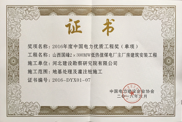 近日,我公司承建的山西國峰2x300MW低熱值煤綜合利用電廠項(xiàng)目獲得2016年度中國電力優(yōu)質(zhì)工程獎(jiǎng)。公司領(lǐng)導(dǎo)早在項(xiàng)目施工期間就高度關(guān)注此項(xiàng)目的評(píng)優(yōu)工作,對(duì)工程施工質(zhì)量、工程資料整理要求極為嚴(yán)格,項(xiàng)目施工結(jié)束后,積極配合中國電力建設(shè)企業(yè)協(xié)會(huì)完成工程獎(jiǎng)申報(bào)資料預(yù)審、現(xiàn)場(chǎng)復(fù)查等各項(xiàng)程序,最終入選中國電力優(yōu)質(zhì)工程獎(jiǎng)。