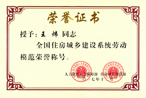 為進(jìn)一步激勵(lì)全國(guó)住房城鄉(xiāng)建設(shè)系統(tǒng)廣大干部職工的積極性和創(chuàng)造性,努力推動(dòng)住房城鄉(xiāng)建設(shè)工作上新臺(tái)階,人力資源社會(huì)保障部、住房城鄉(xiāng)建設(shè)部在全國(guó)住房城鄉(xiāng)建設(shè)系統(tǒng)內(nèi),開展了先進(jìn)集體和先進(jìn)個(gè)人的評(píng)選活動(dòng)。通過逐級(jí)推薦,由人力資源社會(huì)保障部和住房城鄉(xiāng)建設(shè)部最終審定,決定對(duì)197個(gè)先進(jìn)集體,381名先進(jìn)工作者,414名勞動(dòng)模范進(jìn)行表彰。我公司工會(huì)主席王煒同志榮獲全國(guó)住房城鄉(xiāng)建設(shè)系統(tǒng)勞動(dòng)模范榮譽(yù)稱號(hào)。