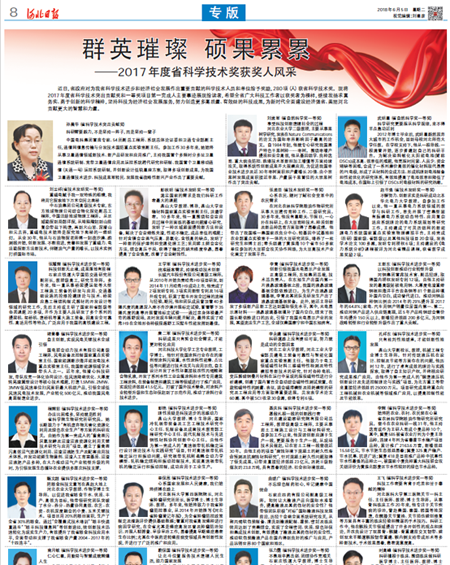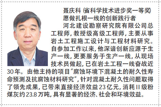 6月5日,河北日報(bào)專版文章《群英薈萃 碩果累累》對2017年度河北省科學(xué)技術(shù)獎獲獎人風(fēng)采進(jìn)行展示。我公司的完成的《腐蝕環(huán)境下混凝土的耐久性壽命預(yù)測及抗腐蝕材料研究》獲得一等獎,聶慶科總工程師作為第一完成人在專版文章中進(jìn)行了刊載,這是以聶總為代表的廣大專業(yè)技術(shù)人員的共同光榮,也必將激勵我們更加努力爭創(chuàng)新的科技成果和榮譽(yù)。
