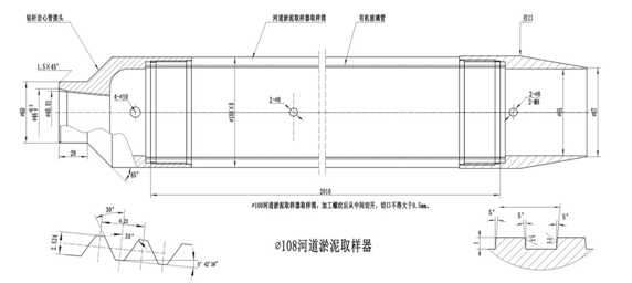 白洋淀采蒲臺區(qū)域Φ108河道淤泥取樣器是將高強度玻璃管置入到半合管式薄壁取樣器中,Φ108×8半合管式取樣器內(nèi)經(jīng)為Φ92,高強度玻璃管規(guī)格為Φ91×2。半合管將高強度玻璃管牢牢地固定在其中,起到很好的保護作用,高強度玻璃管中的淤泥土樣層次分明、清晰可見。
