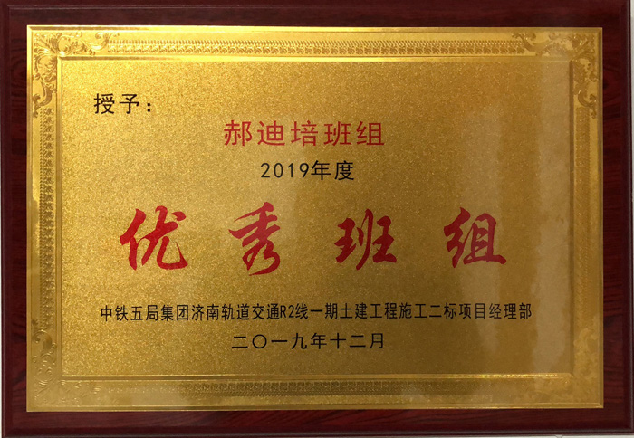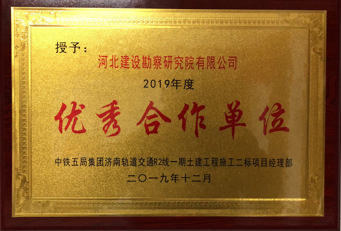 由我公司承接的濟(jì)南市軌道交通R2線施工監(jiān)測項目,近日收到中鐵五局集團(tuán)濟(jì)南地鐵項目部的表揚(yáng)信,并授予我公司“2019年度優(yōu)秀合作單位”、郝迪培班組“2019年度優(yōu)秀班組”兩項榮譽(yù)獎牌。