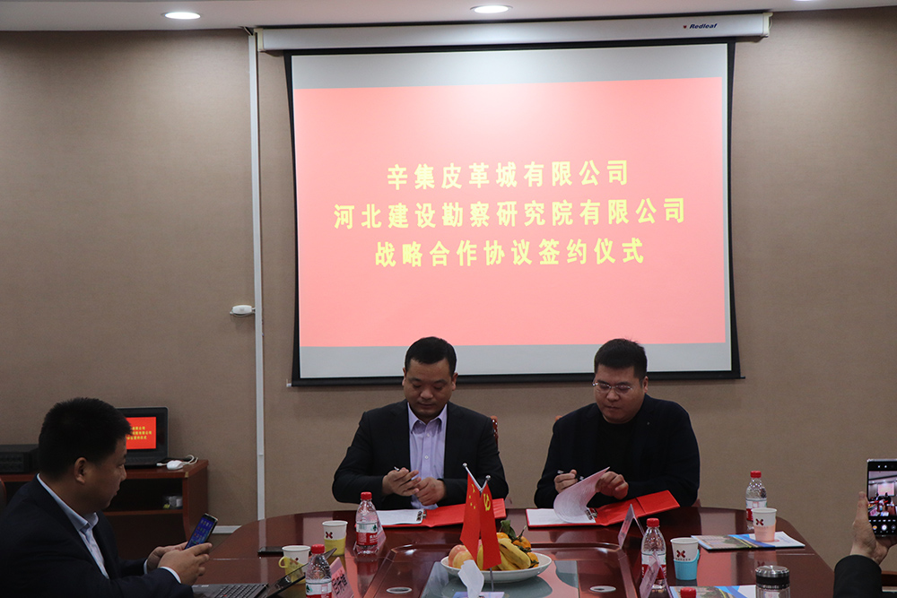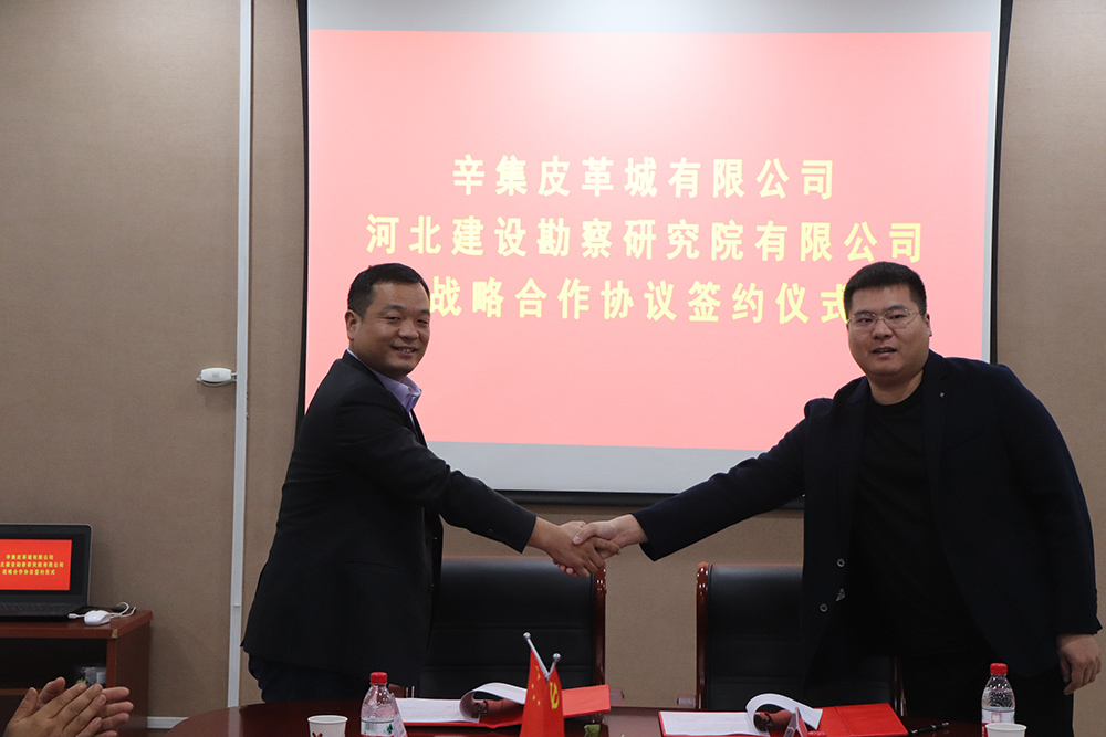 11月1日,陽(yáng)光和煦,微風(fēng)送爽,秋意正濃,河北建設(shè)勘察研究院有限公司同辛集皮革城集團(tuán)有限公司戰(zhàn)略合作協(xié)議簽約儀式,在辛集國(guó)際皮革城盛大舉行。