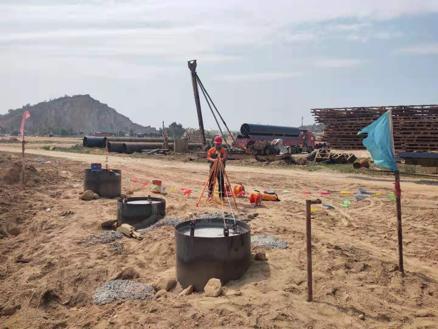 工程承包范圍包括:低溫罐區(qū)、公用工程區(qū)域祥勘巖樣取樣及送檢;球罐區(qū)、公用工程PHC-500AB管樁施工和管樁采購(gòu);低溫儲(chǔ)罐灌注樁樁基工程鉆孔灌注樁的樁位測(cè)放、成孔、鋼筋籠制作與安裝、商品混凝土采購(gòu)及運(yùn)輸、混凝土灌注、渣土清運(yùn)、樁基檢測(cè)等工作。工程開工日期為2021年01月05日,至2021年03月25日全部完成施工任務(wù)。樁基檢測(cè)合格率為100%,低應(yīng)變檢測(cè)及聲波檢測(cè)均為I類樁,單樁承載力符合設(shè)計(jì)要求,均符合合同約定的要求。本項(xiàng)目施工過(guò)程中質(zhì)量、安全和進(jìn)度管理均得到業(yè)主和監(jiān)理、總包的一致好評(píng)。