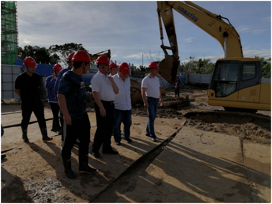 自9月13日中冀建勘辦公樓開(kāi)工儀式以來(lái),經(jīng)過(guò)近一個(gè)月時(shí)間的努力,現(xiàn)場(chǎng)基本達(dá)到了24小時(shí)不間斷施工狀態(tài)。韓董事長(zhǎng)一行人首先來(lái)到項(xiàng)目施工現(xiàn)場(chǎng),對(duì)現(xiàn)場(chǎng)周邊環(huán)境、施工現(xiàn)場(chǎng)質(zhì)量控制、安全管理、基坑支護(hù)工程進(jìn)度情況等進(jìn)行了檢查。在聽(tīng)取項(xiàng)目匯報(bào)后,李總經(jīng)理肯定了項(xiàng)目部在項(xiàng)目管理上的工作成果,重點(diǎn)提出對(duì)現(xiàn)場(chǎng)混凝土抽查檢測(cè)和基坑支護(hù)方案優(yōu)化等問(wèn)題,強(qiáng)調(diào)狠抓現(xiàn)場(chǎng)質(zhì)量管理等事項(xiàng)。韓董事長(zhǎng)要求建設(shè)單位、施工單位和監(jiān)理單位要各負(fù)其責(zé),嚴(yán)格把控現(xiàn)場(chǎng)質(zhì)量控制、安全管理,按時(shí)保質(zhì)的完成基礎(chǔ)施工工程,爭(zhēng)取明年3月底完成±0以下施工。同時(shí)要求項(xiàng)目部在今后的工作中繼續(xù)嚴(yán)格執(zhí)行公司管理要求,做好疫情管控,細(xì)化項(xiàng)目質(zhì)量、安全、進(jìn)度管理,樹(shù)立良好的中冀建勘形象,努力把項(xiàng)目建設(shè)成為??诮瓥|新區(qū)優(yōu)質(zhì)工程,為中冀建勘打開(kāi)海南總承包市場(chǎng)打下良好基礎(chǔ)。