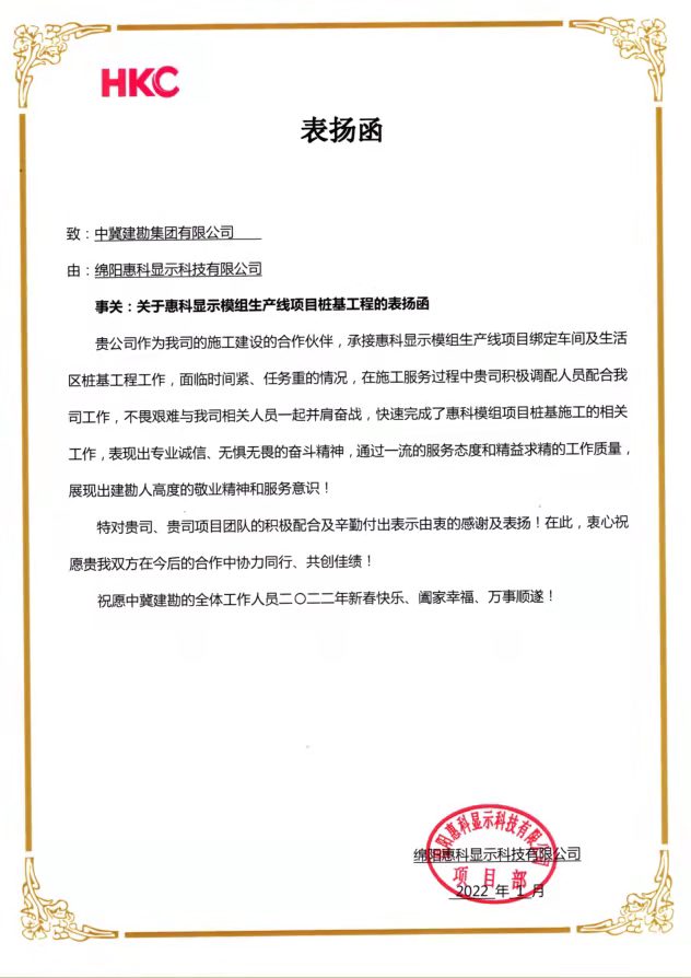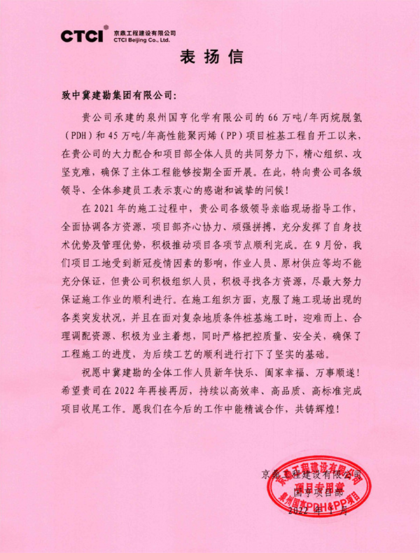 近期,公司連續(xù)收到業(yè)主及總包方發(fā)來的表揚(yáng)信及榮譽(yù)稱號(hào),對(duì)我公司所承擔(dān)的多個(gè)工程項(xiàng)目的生產(chǎn)組織、質(zhì)量管控、安全文明施工等給予了充分肯定。