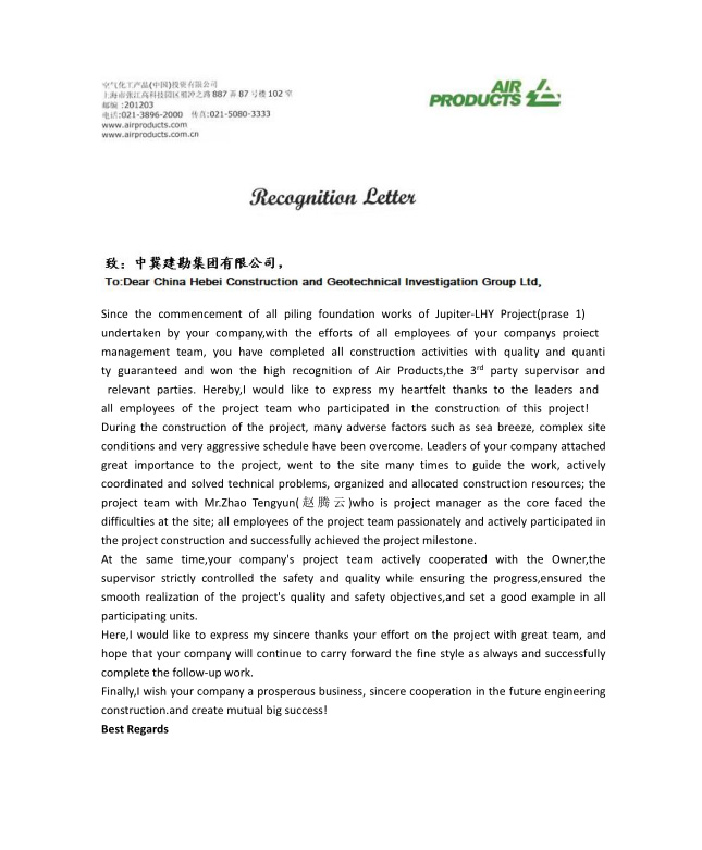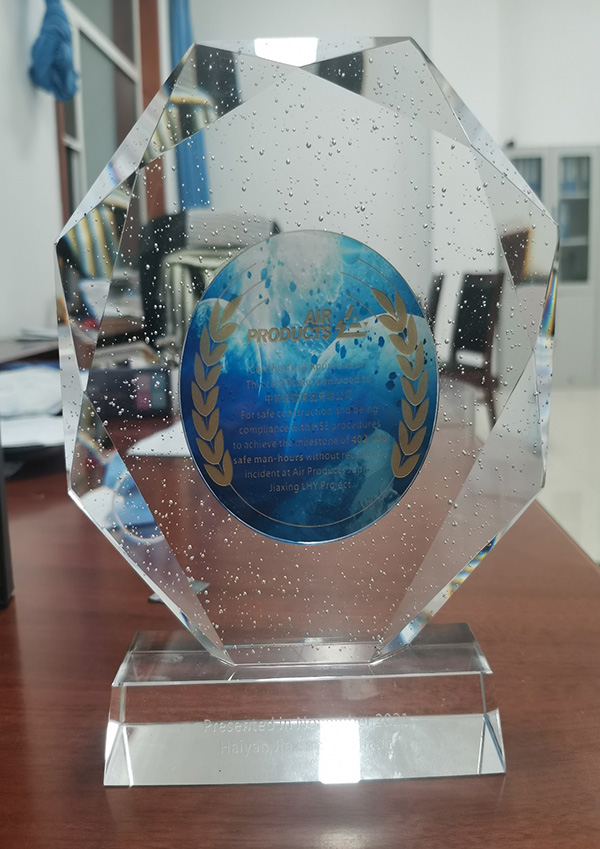 近日,我公司承建的空氣化工產(chǎn)品(浙江)有限公司海鹽氫能源和工業(yè)氣體綜合項目一期工程,收到業(yè)主頒發(fā)的“達到400000安全人工時”優(yōu)秀團隊獎杯和表揚信。