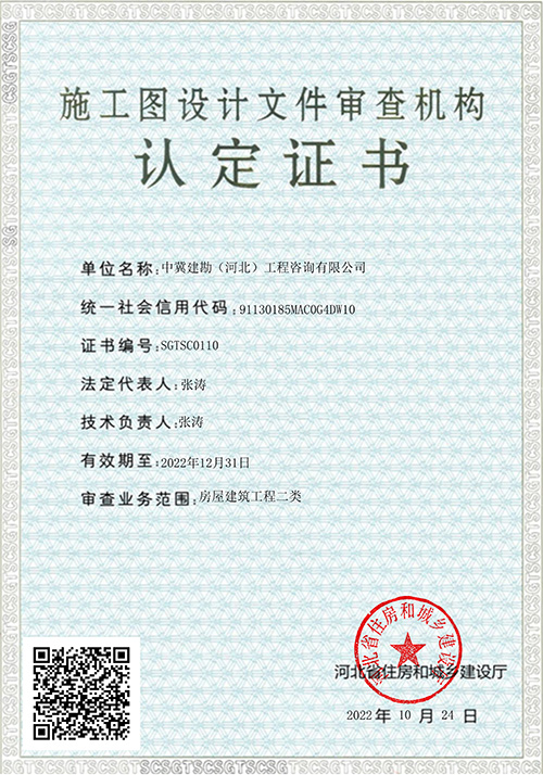 我公司全資控股子公司——中冀建勘(河北)工程咨詢有限公司,于2022年10月24日取得施工圖設(shè)計(jì)文件審查機(jī)構(gòu)認(rèn)定證書,可承接二級(jí)及以下房屋建筑工程的施工圖審查業(yè)務(wù)。隨著施工圖設(shè)計(jì)文件審查機(jī)構(gòu)認(rèn)定證書的取得,為我們進(jìn)一步積極開展市場(chǎng)經(jīng)營(yíng)工作,努力將施工圖審查業(yè)務(wù)打造成為新的經(jīng)營(yíng)創(chuàng)收增長(zhǎng)點(diǎn),提供了新的契機(jī)和基礎(chǔ)。
