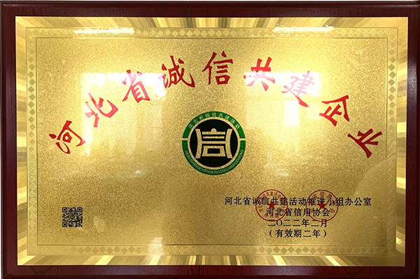 根據(jù)河北省信用辦、河北省信用協(xié)會(huì)等七部門印發(fā)的《關(guān)于開展“推進(jìn)誠信建設(shè)共建信用河北”的活動(dòng)方案》的通知及《關(guān)于2021年度河北省“守合同重信用”企業(yè)申報(bào)認(rèn)定工作的通知》,我公司被評(píng)為“河北省誠信共建企業(yè)”和“河北省AAA級(jí)守合同重信用企業(yè)”。