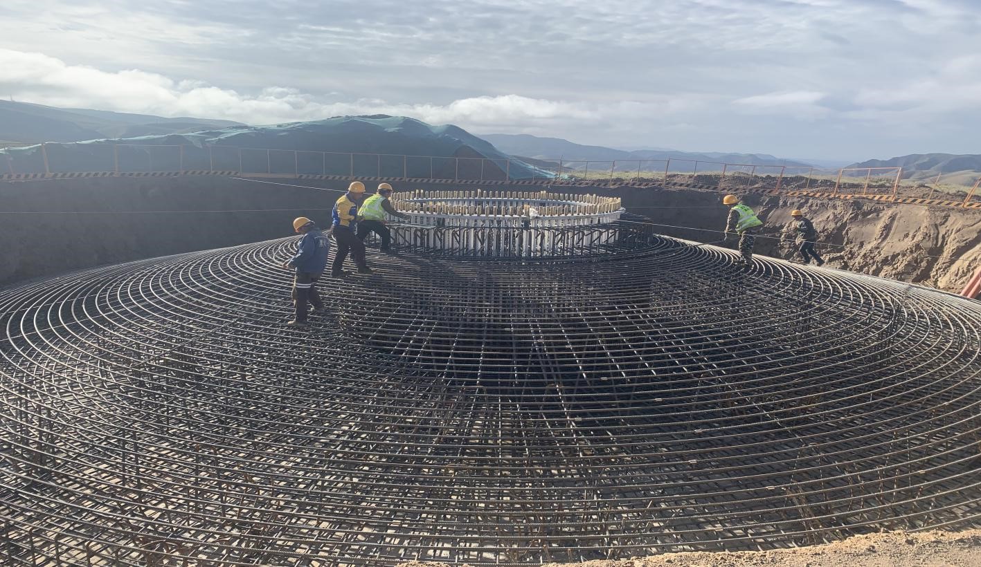 本項(xiàng)目采用了可更換基礎(chǔ)預(yù)應(yīng)力錨栓組件,解決了傳統(tǒng)的埋入式基礎(chǔ)環(huán),預(yù)應(yīng)力錨栓抗疲勞性能差,應(yīng)力不均勻,不方便后期錨栓組件維修保養(yǎng)等問題。由于每個(gè)風(fēng)機(jī)基礎(chǔ)混凝土用量較大,屬于大體積混凝土澆筑,為防止產(chǎn)生混凝土裂縫,我們嚴(yán)格控制混凝土澆筑過程中的溫度和混凝土養(yǎng)護(hù)過程中內(nèi)外部溫差。同時(shí),預(yù)應(yīng)力錨栓組件、錨栓的垂直度和錨板的水平度控制是直接影響風(fēng)機(jī)塔筒穩(wěn)定性的關(guān)鍵因素,施工難度大。