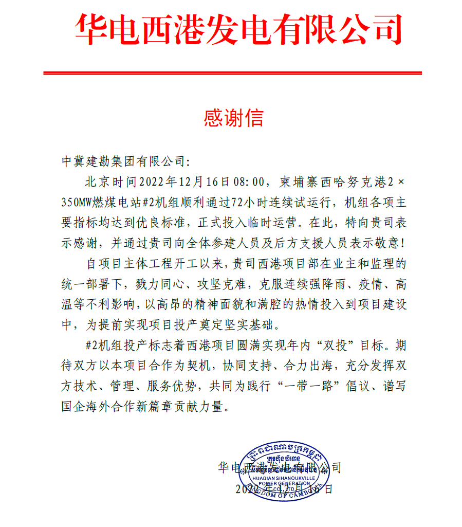 柬埔寨西哈努克港2×350MW燃煤電站#1機(jī)組順利通過柬埔寨國家電力公司要求的滿負(fù)荷性能試驗(yàn),標(biāo)志著中國華電在柬投資興建的最大火電項(xiàng)目首臺(tái)機(jī)組正式投產(chǎn)發(fā)電。自該項(xiàng)目主體工程開工以來,西港項(xiàng)目部全體人員在業(yè)主和監(jiān)理的統(tǒng)一部署下,勠力同心、攻堅(jiān)克難,克服連續(xù)降雨、疫情、高溫等不利影響,以高昂的精神面貌和滿腔的熱情投入到項(xiàng)目建設(shè)中,為項(xiàng)目提前實(shí)現(xiàn)#1機(jī)組投產(chǎn)奠定堅(jiān)實(shí)基礎(chǔ)。