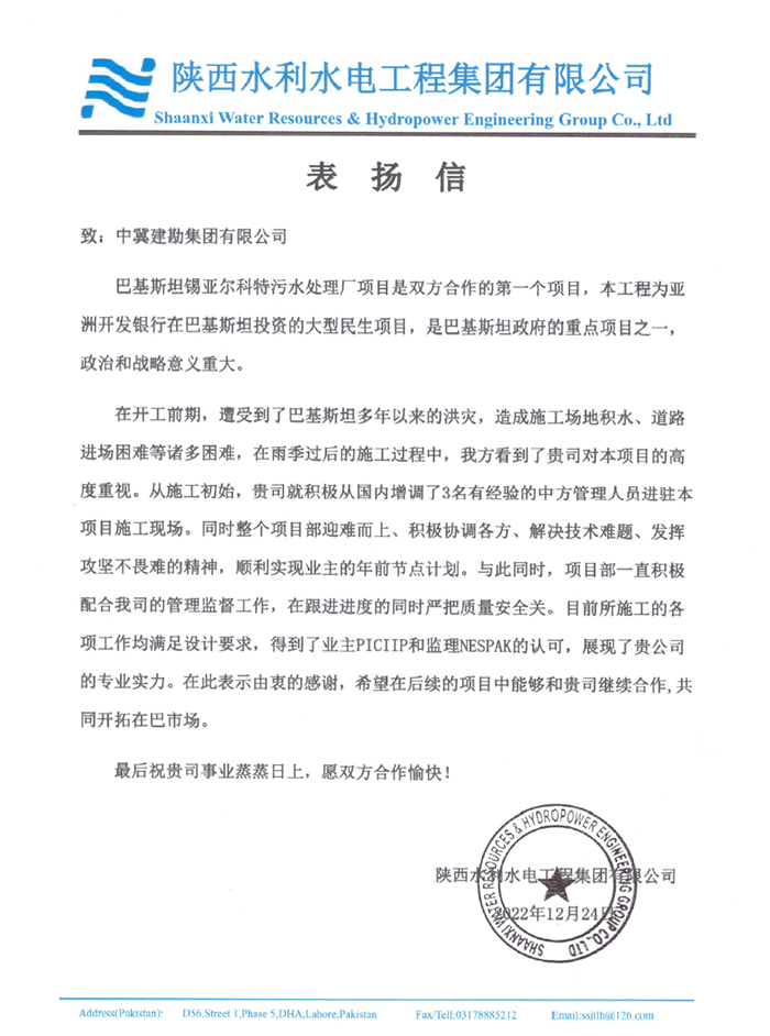 巴基斯坦錫亞爾科特污水處理廠項(xiàng)目是我方和陜西水利水電工程集團(tuán)有限公司合作的第一個(gè)項(xiàng)目,是亞洲開發(fā)銀行在巴基斯坦投資的大型民生項(xiàng)目,是巴基斯坦政府的重點(diǎn)項(xiàng)目之一,政治和戰(zhàn)略意義重大。在工程前期,遭受到了巴基斯坦多年以來的洪災(zāi),造成施工場地積水、道路進(jìn)場等諸多困難。我們整個(gè)項(xiàng)目部高度重視,迎難而上、積極協(xié)調(diào)各方、解決技術(shù)難題、發(fā)揮攻堅(jiān)不畏難的精神,順利實(shí)現(xiàn)業(yè)主的年前節(jié)點(diǎn)計(jì)劃。目前施工的各項(xiàng)工作均滿足設(shè)計(jì)要求,得到了業(yè)主PICIIP和監(jiān)理NESPAK的認(rèn)可,展現(xiàn)了我公司的專業(yè)實(shí)力。業(yè)主希望在后續(xù)的項(xiàng)目中能夠和我公司繼續(xù)合作,共同開拓巴基斯坦市場。