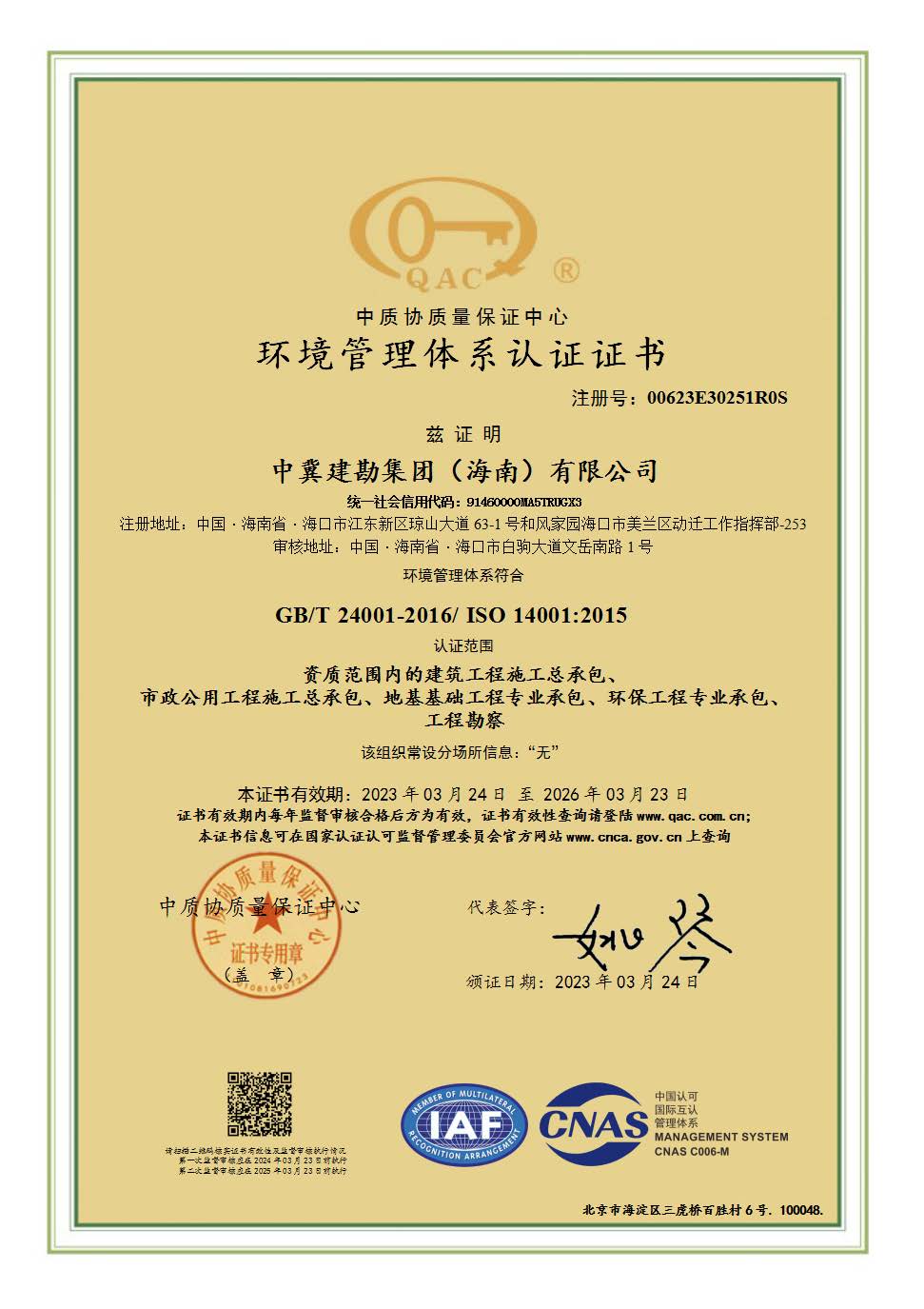 本次認證范圍覆蓋了中冀建勘集團(海南)有限公司現(xiàn)有的建筑工程施工總承包、市政公用工程施工總承包、地基基礎工程專業(yè)承包、環(huán)保工程專業(yè)承包及工程勘察資質(zhì)。這標志著質(zhì)量管理體系(GB/T19001-2016)、環(huán)境管理體系(GB/T24001-2016)、職業(yè)健康安全管理體系(GB/T45001-2020)在中冀建勘集團(海南)有限公司有效貫徹運行。