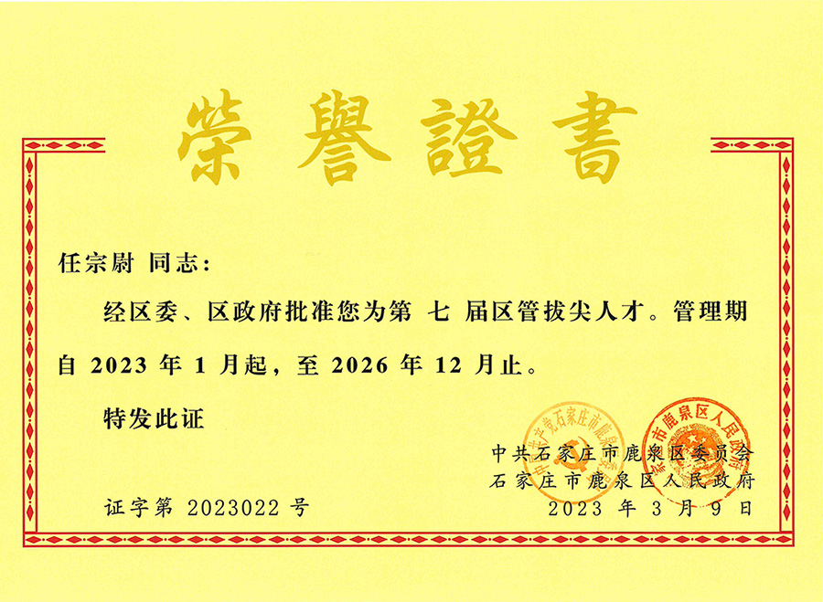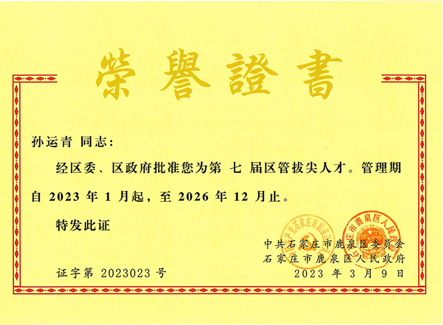 經(jīng)公司組織申報(bào),中共石家莊市鹿泉區(qū)委員會(huì)組織資格審核、綜合評(píng)審、征求意見(jiàn)、實(shí)地考察、區(qū)委常委會(huì)議研究等程序,我公司孫運(yùn)青、任宗尉兩名同志入選為石家莊市鹿泉區(qū)第七屆區(qū)管拔尖人才。