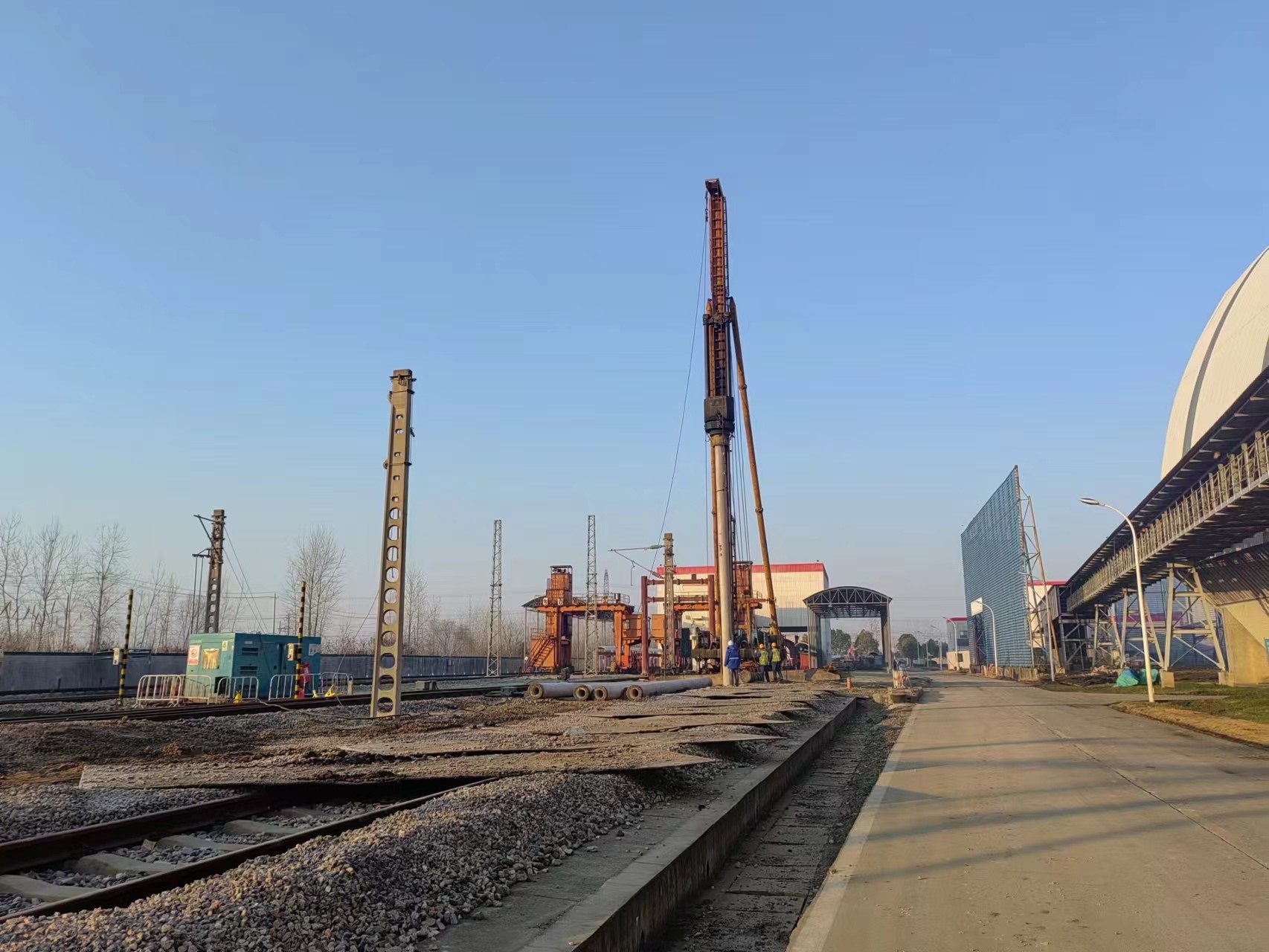H2標(biāo)段樁基工程于2023年7月11日開工, 2024年1月28日施工完成。本工程因施工區(qū)域較為分散,項(xiàng)目管理難度加大。為此,項(xiàng)目部積極與設(shè)計(jì)院就出圖順序進(jìn)行溝通,提前籌劃安排行進(jìn)方向的管樁原材料配備和現(xiàn)場(chǎng)道路鋪設(shè)、排水設(shè)施供應(yīng)等后勤保障工作,保證樁機(jī)施工的連續(xù)性,確保了建設(shè)單位的工期時(shí)間要求。此外,管帶機(jī)施工區(qū)域位于三期電廠內(nèi),涉及10kV高壓線拆除、大棚拆遷、樹木移除、監(jiān)控拆除、屏風(fēng)拆除等工作。項(xiàng)目部積極與建設(shè)方協(xié)調(diào)溝通,全力推進(jìn)施工區(qū)域內(nèi)障礙物拆除和清理工作。因部分樁位在火車鐵軌上,項(xiàng)目部積極與鐵路方溝通,與建設(shè)方、監(jiān)理方謀劃施工方案,采取相應(yīng)措施,圓滿完成了施工任務(wù)。經(jīng)第三方檢測(cè),合格率100%。