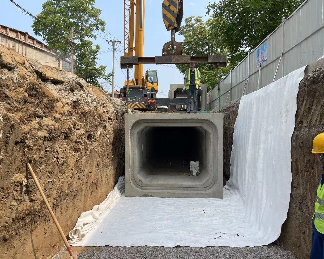 本工程主要施工特點(diǎn)是在保證周邊居民正常生活排水的前提下,在淤泥質(zhì)粉土地層中通過開槽法進(jìn)行雨污水管道安裝施工。工程于2023年4月20日開工,12月15日完工。通過對(duì)淤泥質(zhì)粉土地層的加固處理以及管道安裝施工、接縫處理、回填處理和路面基層施工處理,歷時(shí)239天,圓滿完成合同任務(wù),經(jīng)第三方檢測(cè),合格率100%。目前申報(bào)了三項(xiàng)實(shí)用新型專利,一項(xiàng)實(shí)用新型工法。