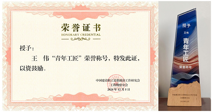 經(jīng)公司積極申報推薦,中國建設(shè)職工思想政治工作研究會工程勘察分會嚴(yán)格審核,一公司經(jīng)理王偉同志榮獲“青年工匠”榮譽稱號。