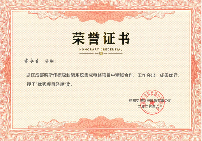 同心聚力 共賦“芯”章——集團公司獲得成都奕成科技股份有限公司“優(yōu)秀承包商”榮譽