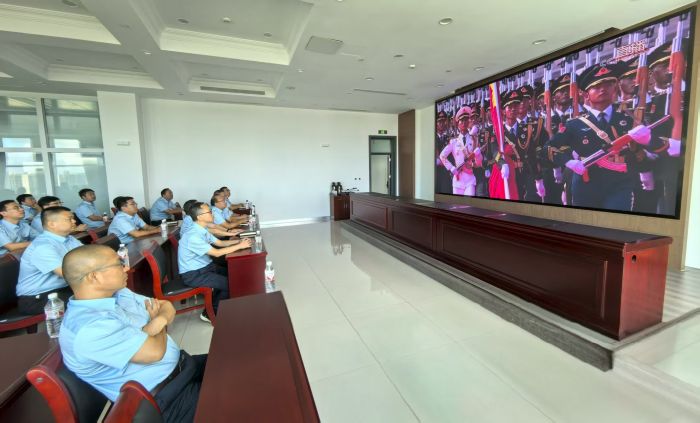 當(dāng)威武雄壯的受閱方隊(duì)邁著鏗鏘有力的步伐走過(guò),當(dāng)各類現(xiàn)代化裝備依次亮相,當(dāng)戰(zhàn)機(jī)編隊(duì)劃破長(zhǎng)空,強(qiáng)大的陣容、恢宏的氣勢(shì),讓觀看直播的職工們心潮澎湃,會(huì)議室里不時(shí)響起陣陣驚呼聲。