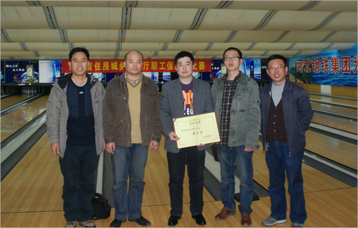 11月10日,河北省住房和城鄉(xiāng)建設(shè)廳職工保齡球比賽在太行賓館保齡球館火熱開賽。我公司派出陳寧、王永周、胡建林、王利鋒、唱曉剛組成的河北建勘保齡球隊(duì),角逐男子團(tuán)體和個(gè)人排名賽。在熱火朝天的比賽中,我參賽選手士氣高漲,在比賽中學(xué)習(xí)揣摩,在比賽中實(shí)踐,最終在這項(xiàng)完全陌生的運(yùn)動(dòng)項(xiàng)目中獲得總分1200分,取得了團(tuán)體第三名的好成績。