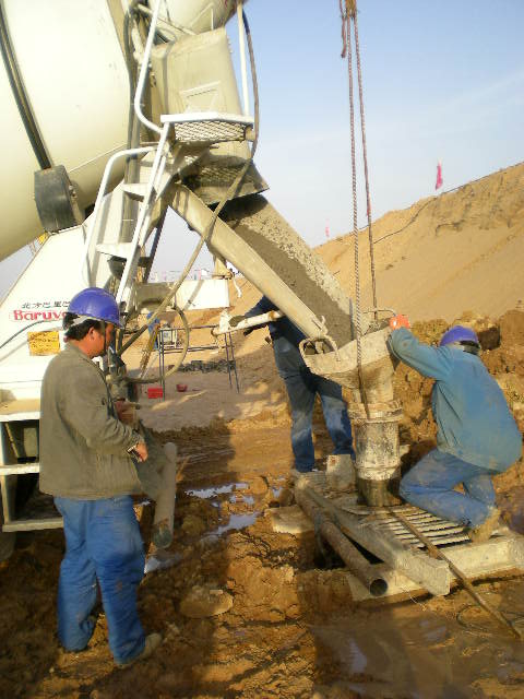 該工程位于陜西省榆林市西南的橫山縣白界鄉(xiāng)馬扎梁村附近,包括空冷區(qū)域,主廠房區(qū)域樁基。樁基工程自2008年4月26日開工,至2009年3月18日竣工,實(shí)際完成鋼筋混凝土灌注樁1981根,設(shè)計(jì)砼方量36252.75m3,澆筑混凝土39664.2m3。