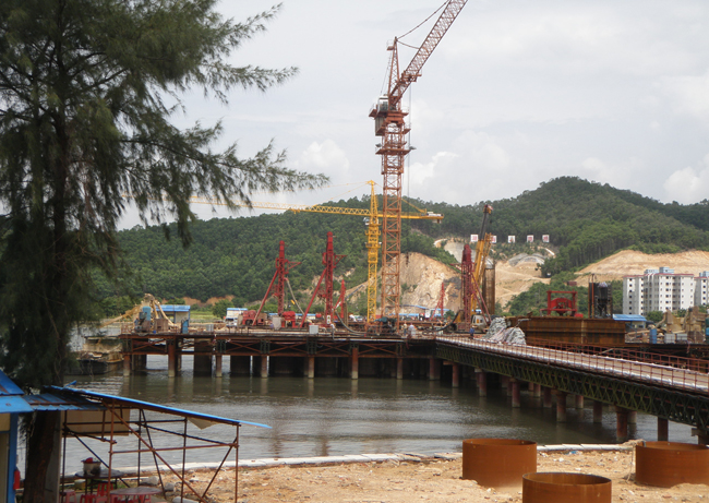 工程位于廣深沿江高速公路太平特大橋工程位于東莞市虎門鎮(zhèn)漁政碼頭西北側(cè),橫跨太平水道。區(qū)域內(nèi)主要為第四系地層和古生代混合片麻巖,其分布面積廣大,層位齊全,巖相多變,且左#8墩、右9#墩地層中含有孤石;右6#、左7#墩此層中含有大量護(hù)坡石,施工難度較大。采用機(jī)械、液壓回轉(zhuǎn)鉆機(jī)和液壓沖擊反循環(huán)鉆機(jī)成孔,氣舉反循環(huán)方式排渣。